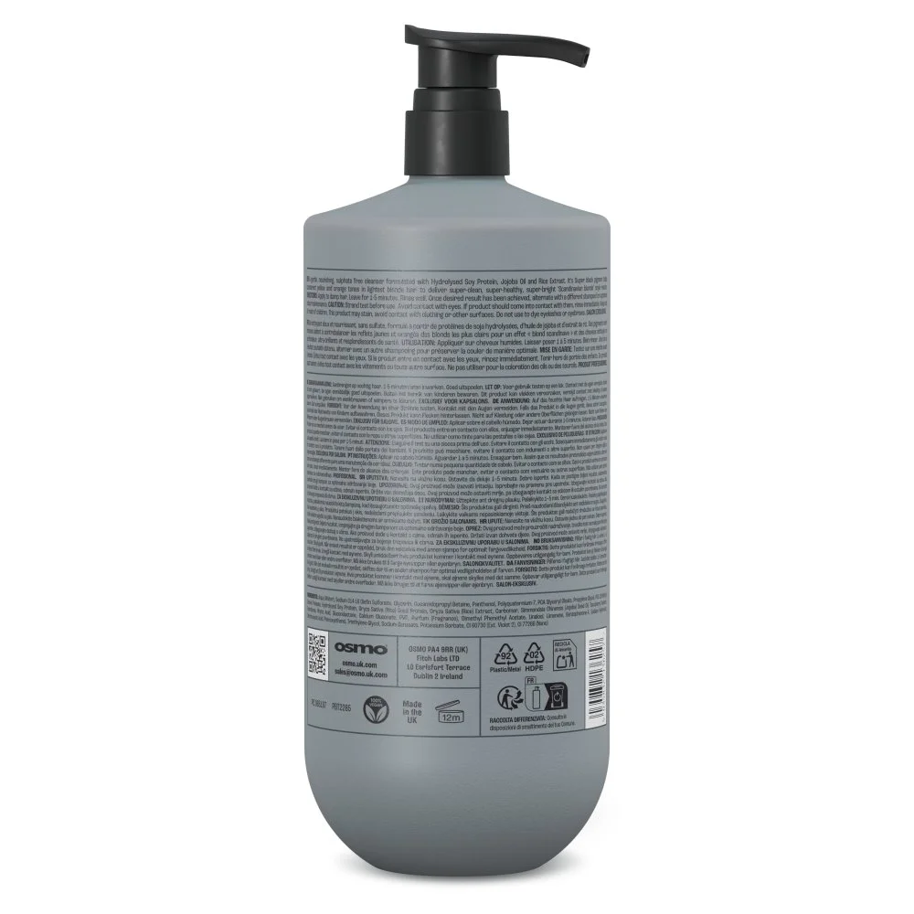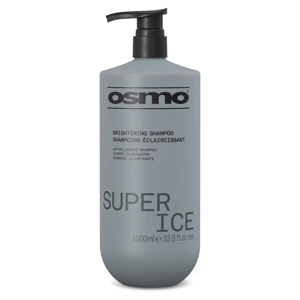 El Champú Super Ice Antiamarillos de Osmo contrarresta los tonos amarillos y anaranjados de los cabellos rubios más claros para obtener resultados limpios y de estilo «rubio escandinavo».